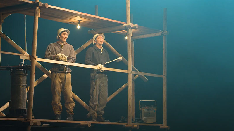 制作にあたっては、評伝劇の第一人者である「演劇集団よろずや」様と強固なタッグを組み、山口社主ご本人や当時のOBの方々への徹底した取材を敢行。半年以上の歳月をかけて脚本を磨き上げました。 撮影は大阪城公園・COOL JAPAN PARK OSAKAのTTホールを貸し切り、三日三晩にわたる設営・ゲネプロ・本番収録を実施。最小限の舞台装置を活かした俳優の身体表現と、照明が織りなす詩的な世界観に、再現ドラマの写実的なエッセンスを融合させました。